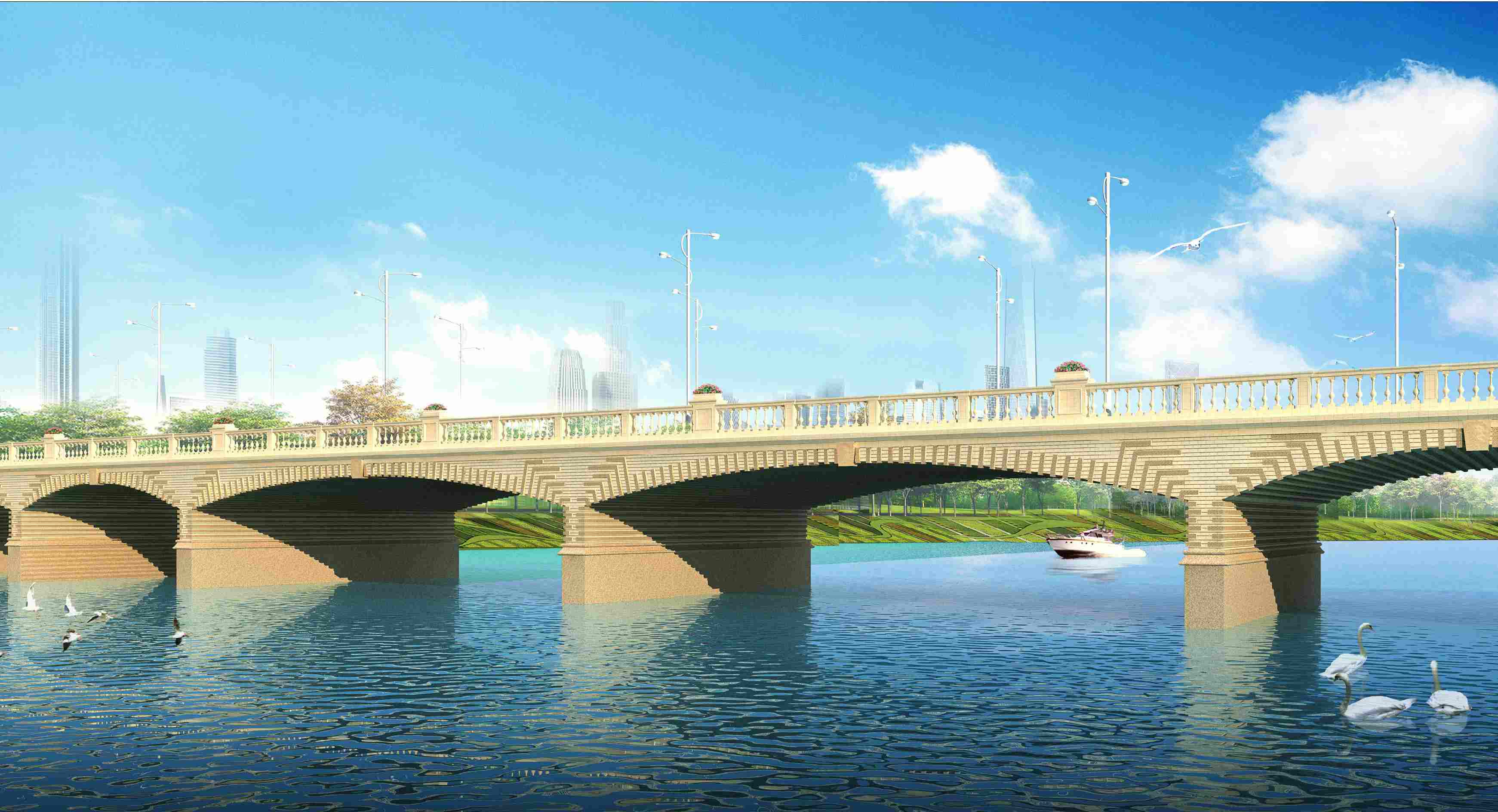 漯河市太白山路沙河橋位于漯河市太白山路沙河橋上,橋南與涇河路相接,橋北與遼河路相連,規(guī)劃為城市主干道,行車速度60KM/h,太白山路橋北引道長360.92m(其中跨濱河路橋?yàn)?×20m),南引道長254.92m(其中跨沙南新路橋?yàn)?×20m),道路總長度為980m。