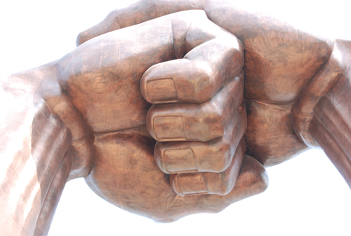 《禮儀之門》安裝地點:西四環連霍高速溝趙收費站對面  雕塑30米,材質:鍛銅。“抱拳禮”是中華傳統禮儀風范的一種禮貌動作,含有尊重、歡迎的寓意。以“抱拳禮”為原型的30米高雕塑《禮儀之門》有望成為鄭州新地標。